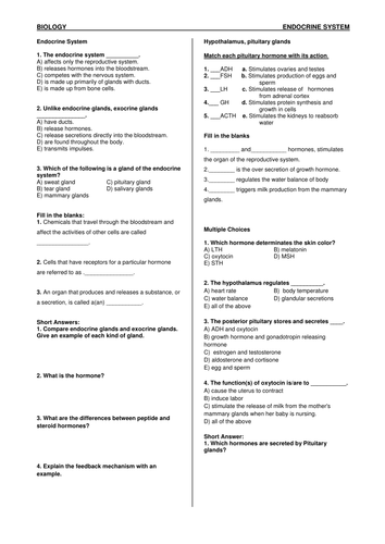 Endocrine system questions and answers pdf. Most hormones travel from the gland where they were produced to the tissues and cells which they act upon. Questions to accompany Anatomy and Physiology CHAPTER 11 THE ENDOCRINE SYSTEM 1. Free download in PDF Endocrine System Objective Type Questions Answers for competitive exams.