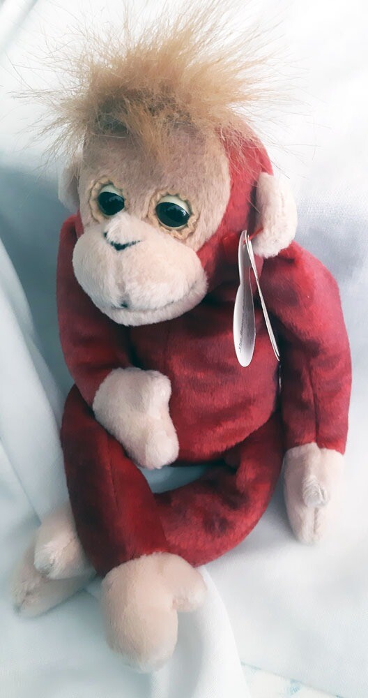 It is made with a special dying process where only the very tips are dyed a separate color. Ty Beanie Babies - Schweetheart the Orangutang Toy 1689.