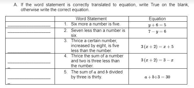 One-fourth of the number x x 4. What number is 6 more than 3. When a number is subtracted from six the result is four more than the original number.